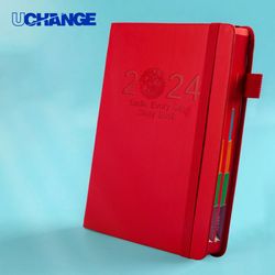 This A5 notebook features a sophisticated faux leather exterior and elegant cream-colored Dowling paper interior, measuring 8.27 x 5.71 inches. Perfect for jotting down thoughts, sketches, or daily notes, it serves as a stylish and functional companion for your creative endeavors. With its durable construction and timeless design, this notebook is ideal for both professional and personal use, making it a must-have for anyone who values quality and style. QTY for 300 pcs and over, shipped by sea. Please feel free if you are interested in our items or need more assistance. Welcome your inquiry and logo.